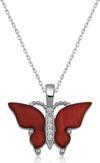 Gümüş Kırmızı Kaplangözü Taşlı Kelebek Bayan Kolye