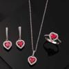 Gümüş Kırmızı Taşlı Kalpli Kadın Set
