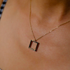 Fasek Gold Gümüş Kolye - Kare Desenli Tasarım 925 Ayar Gümüş Kolye-Kare Geometrik Şans Kolyesi- Hediyelik Kolye