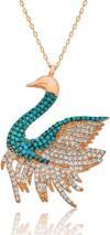 Kuğu; en asil, duru ve zarif duruşuyla aşıkları temsil ediyor... Bu şık ve göz alıcı kolye; doğum günü hediyesi, sevgililer günü hediyesi veya annelere hediye olarak özel günlerde tercih edilebilecek mükemmel bir seçenektir. Bu anlamlı ve şık kolye; 925 ayar gümüşten imal edilmiştir. Bu bayan gümüş kolye üzerine rose kaplama yapılmıştır. Rose kaplama yapılan tüm kolyeler parlaklığını uzun süre muhafaza eder, gümüşü pembe renge dönüştürür ve oksitlenmeyi geciktirir. Zincir boyu ortalama 45 cm'dir. Kuğu bayan kolye üzerinde bulunan taşlar zirkon ve firuzedir. Tüm gümüş kolyelerde olduğu gibi bu gümüş kuğu bayan kolye de el emeği ile üretilmiştir. Gümüş ve değerli taşlar nedeniyle ürün ağırlığında ± %10 sapma olabilmektedir.