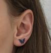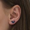 Her yaştan kadının stiline uyum sağlayabilecek farklı küpe modellerinin yer aldığı koleksiyonumuzda birbirinden özgün tasarımlı küpe modelleri sizleri bekliyor. Kelebek figürü kullanılarak hazırlanan küpe aklınızı başınızdan alacak. Günlük kullanıma uygun bir model olan küpe her an sizlerle birlikte. Göz kamaştıran yapısıyla tasarlanmış gümüş kelebek küpeyi severek kullanacaksınız. Bu koleksiyonda hem kendiniz, hem de sevdikleriniz için mutlaka uygun bir küpe bulacaksınız. Gümüş lacivert kelebek küpe, 925 ayar gümüşten imal edilmiştir. Gümüş üzerine rodyum kaplama yapılmıştır. Rodyum kaplama yapılan gümüş bayan küpeler parlaklığını uzun süre muhafaza eder, oksitlenmesi gecikir. Üzerinde bulunan taşlar zirkondur. Tüm gümüş bayan küpelerde olduğu gibi bu gümüş lacivert kelebek küpe modeli de el emeği ile üretilmiştir. Gümüş ve değerli taşlar nedeniyle belirtilen ortalama ürün ağırlığında ± %10 sapma olabilmektedir.