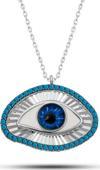 Gümüş Mavi Göz Koruyucu Kadın Kolye
