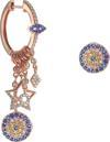 925 ayar gümüş rose zirkon ve safir taşlı nazar modeli şans küpe.Boyut halka çapı:21 mm sallantılarıyla beraber uzunluğu 48 mm nazar boyutu:8 mm Not:bir kulakta halka olan küpe diğer kulakta sadece nazar vidalı küpe modeli takılır