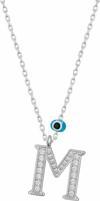Gümüş Nazar Rodyum M Harfi Kadın Kolye