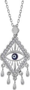 Birçok kültürde kötü enerjinin zararlarından korunmak için çeşitli tılsımlar kullanılmıştır. Doğu kültürlerinin çoğunda kullanılan tılsım ise gözdür. Nazar boncuğu da göz şeklinden ilham alınarak tasarlanmıştır. Mavi rengin seçilmesi de tesadüf değildir. Renkli gözlü kişilerin enerjisini daha etkili yansıttığı inancı gereği nazar boncukları çoğunlukla mavi olarak tasarlanır. Güzelliğiyle göz kamaştıran, nazardan korunmasını istediğiniz kişilere ve sevdiklerinize gümüş nazarlı göz kolyeyi armağan edebilirsiniz. Gümüş kolye üzerinde rodyum kaplama yapılmıştır. Rodyum kaplama yapılan gümüş kadın kolyeler parlaklığını uzun süre muhafaza eder, oksitlenmesi gecikir. Gümüş olan zincir boyu ortalama 45 cm'dir. Ürünlerimizin tamamı el emeği ile üretilmiştir. Gümüş ve değerli taşlar nedeniyle ürün ağırlığında ± %10 sapma olabilmektedir.