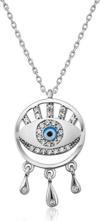 Birçok kültürde kötü enerjinin zararlarından korunmak için çeşitli tılsımlar kullanılmıştır. Doğu kültürlerinin çoğunda kullanılan tılsım ise gözdür. Nazar boncuğu da göz şeklinden ilham alınarak tasarlanmıştır. Mavi rengin seçilmesi de tesadüf değildir. Renkli gözlü kişilerin enerjisini daha etkili yansıttığı inancı gereği nazar boncukları çoğunlukla mavi olarak tasarlanır. Güzelliğiyle göz kamaştıran, nazardan korunmasını istediğiniz kişilere ve sevdiklerinize gümüş nazarlı göz kolyeyi armağan edebilirsiniz. Ürünlerimizin tamamı el emeği ile üretilmiştir. Gümüş ve değerli taşlar nedeniyle ürün ağırlığında ± %10 sapma olabilmektedir.