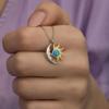 Gümüş Opal Mavi Taşlı Ay Güneş Kadın Kolye