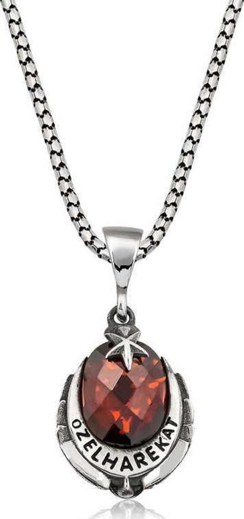 Polis Özel Harekat birimine bağlı olarak görev yapan Polis memurlarına özel hazırlanmış bu gümüş kolye mesleğinizin gururunu her zaman boynunuzda taşımanız için tasarlandı. 925 ayar gümüş kullanılarak üretilen bu aksesuarda kolye üzerine Polis Özel Harekat arması işlenmiş kolye üzerine Polis Özel Harekat yazısı yazılmıştır. Kolye modeli 925 ayar gümüşten imal edilmiştir. Gümüş üzerine oksit kaplama yapılmıştır. Oksit kaplama yapılan kolye modelleri gümüşe otantik bir görünüm verir. Üzerinde bulunan kırmızı taş zirkondur. Gümüş zincir uzunluğu 55 cm'dir. Diğer kolyelerde olduğu gibi gümüş özel harekat kolye modeli de el emeği ile üretilmiştir. Gümüş ve değerli taşlar nedeniyle belirtilen ortalama ürün ağırlığında ± %10 sapma olabilmektedir.