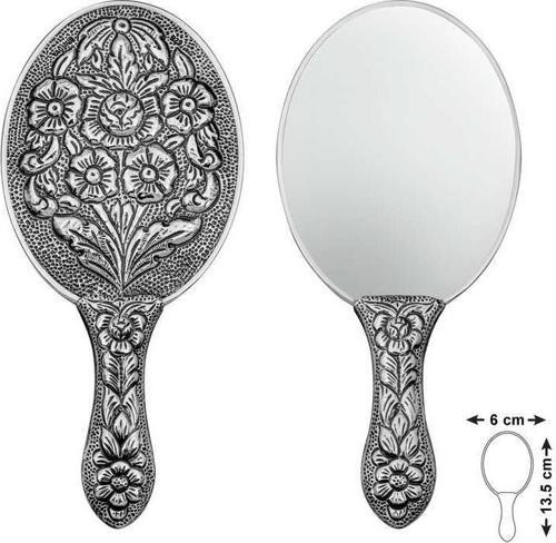 Gümüş Papatya ve Gül Motifli El Aynası