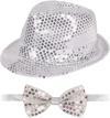 Gümüş Payetli Şapka ve Papyon Seti – Parıltılı Parti Aksesuarı