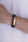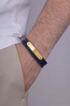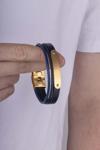Altın kaplama aparatlı lacivert deri erkek bileklik, sevdiklerinize hediye edebileceğiniz şık bir aksesuardır. Doğum günü, yıldönümü ya da özel kutlamalarda tercih edilebilecek bu model, modern erkeklerin tarzını tamamlayarak onlara özgün bir stil kazandırır. Hem günlük yaşamda hem de özel günlerde kullanabileceğiniz bu bileklik, gardırobunuza zamansız bir şıklık katar.