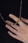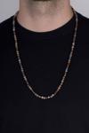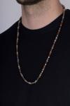 Hematit taşı ve akik taşının enerjik uyumuyla tasarlanan bu erkek kolye, şıklığı ve güçlü enerjisiyle dikkat çeken özel bir aksesuardır. Akik taşının sıcak tonlardaki doğal renk geçişleri, hematit taşının parlak gri yansımalarıyla birleşerek modern ve maskülen bir kontrast sunar.