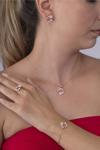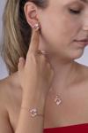 925 ayar gümüş üzerine uygulanan rose altın kaplama, setin sıcak ve romantik görünümünü destekler. İnci taneleri ve pembe taşların uyumu, tasarıma farklı bir dokunuş katarken, el işçiliği montür tekniği ürünün kalitesini ortaya koyar. Hafif yapısı sayesinde gün boyu rahat kullanım sunar.