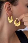 Motifli altın kaplama çelik kadın halka küpe, zarif detayları ve göz alıcı tasarımıyla şıklığı ön plana çıkarır. Motif işlemeleriyle hareket kazandırılan halka formu, modern ve geleneksel çizgileri bir arada sunarak her tarza uyum sağlar. Parlak altın kaplama yüzeyi ışıltısıyla dikkat çekerken, paslanmaz çelik yapısı uzun ömürlü kullanım imkanı sunar. Günlük kombinlerde zarif bir dokunuş, özel günlerde ise iddialı bir tamamlayıcı olarak kullanılabilir. Hem kendinize hem de sevdiklerinize anlamlı ve şık bir hediye alternatifi oluşturur.