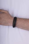 Dayanıklı deri malzemeden üretilen bileklik, uzun süreli kullanım için ideal bir seçenektir. Zamansız siyah rengi, her tarz kıyafetle kolayca uyum sağlayarak sade ama iddialı bir görünüm kazandırır. Casual giyimden ofis şıklığına kadar pek çok farklı kombinde rahatlıkla kullanılabilen bu model, erkek aksesuar modasında modern çizgilerin ön plana çıktığı bir tasarımı temsil eder.