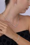 Işıltısını her açıdan kusursuz şekilde yansıtan bu set, pırlanta montür tekniğiyle işlenmiş taşların su yolu formunda sıralanmasıyla hazırlanmıştır. 925 ayar gümüşten üretilen kolye, bileklik ve küpeden oluşan bu zarif takım; klasik ve modern şıklığı aynı potada eriterek, zamansız bir takı deneyimi sunar.