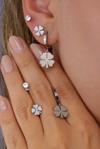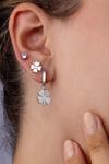 Yonca motifli üçlü tasarımıyla dikkat çeken beyaz altın kaplama çelik küpe, zarif ve anlamlı bir görünüme sahiptir. Şansın simgesi olan yonca deseni, minimal ve şık detaylarla bir araya getirilmiştir. Parlak yüzeyi, ışıltılı yapısıyla günlük kullanımdan özel davetlere kadar her kombine uyum sağlar. Paslanmaz çelik yapısı uzun ömürlü kullanım imkânı sunarken, beyaz altın kaplama modern ve sofistike bir hava katmaktadır. Hem kendiniz hem de sevdikleriniz için özel bir hediye alternatifi olarak öne çıkar.