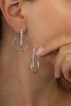 Geometrik daire formu ve dikey taşlı şeridin birleşimi, tasarıma özgün bir karakter kazandırır. Hem klasik hem de modern çizgilere hitap eden bu küpe, zarif detaylarıyla kadınların kombinlerinde güçlü bir tamamlayıcıdır. Beyaz taşların parıltısı, küpenin her ortamda dikkat çekici bir duruş sergilemesini sağlar.