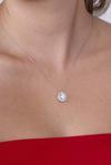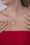 925 ayar gümüş üzerine uygulanan beyaz altın kaplama, kolyenin parlaklığını uzun süre korur. Zincir yapısı hafiftir ve gün boyu rahat kullanım sağlar. Yuvarlak kesim taşın klasik formu, kolyeye zamansız bir stil kazandırır.
