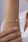 Altın kaplama çelikten üretilen bu bileklik, hem dayanıklılığı hem de uzun süre parlaklığını koruyan yapısıyla öne çıkıyor. Şıklığınızı tamamlamak için tek başına kullanılabileceği gibi diğer aksesuarlarla birlikte de zarif bir uyum sağlar.
