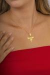 Altın kaplama detayları ve parlak taş süslemeleriyle dikkat çeken kolye, her kombine sofistike bir dokunuş katar. Hafif yapısı sayesinde gün boyu konforlu bir kullanım sunar. 925 ayar gümüşün dayanıklılığıyla uzun yıllar şıklığını koruyacak bu kolye, yalnızca bir takı değil aynı zamanda güçlü bir sembolün taşıyıcısıdır.