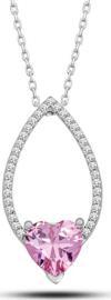 Gümüş Pembe Taşlı Kalp Kadın Kolye