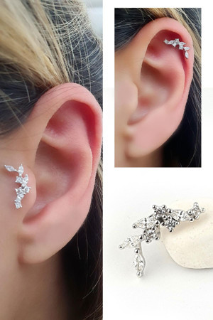 Zirkon Taş Detaylı Yonca Figürlü 925ayar Gümüş Tragus Helix Kikirdak piercing
