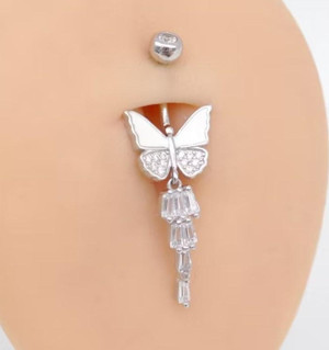 Kelebek Temalı 925 Ayar Gümüş Göbek Piercing Küpe