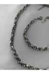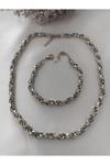 X-lady Accessories Gümüş Renk Çelik İç İçe Geçmeli Halat Unisex Kararmaz Kolye Ve Bileklik Çelik Set - 3214