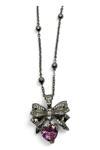 X-lady Accessories Gümüş Renk Fiyonk Pembe Kalp Model Top Zincir Çelik Kolye- 3765