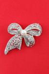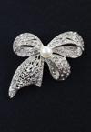 Keeba Gümüş renk incili fiyonk broş. Taşlı tasarım fiyonk broş. Yaka iğnesi fiyonk broş. Fiyonk broş.