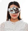 Gümüş Renk Kostüm Partisi Ekstra Parlak Balo Maskesi 15x10 Cm