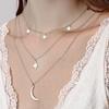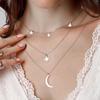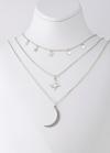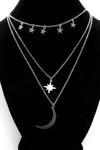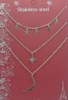 Gümüş Renk Çelik Kutup Yıldızı Ve Hilal Figürlü Çok Katmanlı Kombin Kolye
