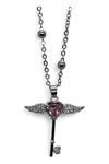X-lady Accessories Gümüş Renk Pembe Taş Kanat Anahtar Model Sf Zincir Çelik Kolye - 3815