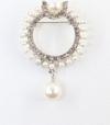 Keeba Gümüş renk sallantılı inci broş. Taşlı tasarım inci broş. Yaka iğnesi broş. İnci broş, incili broş