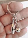 Gümüş Renkli Bowling Topu ve Labut Metal Anahtarlık – Spor Tutkunlarına Özel Şık Aksesuar