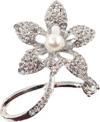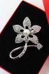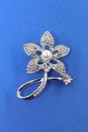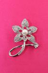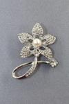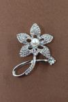 Keeba Gümüş renkli incili yasemin çiçeği broş. Taşlı tasarım broş. Yaka iğnesi broş. Yasemin çiçeği broş