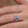 Gümüş Renkli Taşlı Kalp Figürlü Yonca Kolye