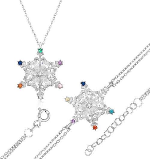 Gümüş Renkli Taşlı Kar Tanesi Kadın Set