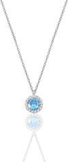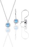 925 ayar gümüş rodyumlu akuamarin taşlı pırlanta montür kolye ve küpe seti. Montür Boyut:6,8 mm Zincir Uzunluk:45 cm