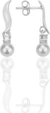 925 ayar Gümüş rodyumlu inci ve zirkon taşlı dalga küpe. Yukarıdan Aşağı Boyut:23 mm İnci Boyut:5,5 mm