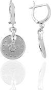 925 ayar gümüş rodyumlu Osmanlı tuğralı küpe.Boyut:uzunluk:30 mm para kısmı çapı: 13 mm