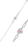 925 ayar gümüş rodyumlu pembe zirkon taşlı pırlanta modeli kalp bileklik . Kalp Montür Boyutu:10 mm Uzunluk:16+3 cm uzatmalı