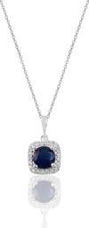 925 ayar gümüş zirkon ve safir taşlı pırlanta montürlü kare kolye. Montür Boyut:9 mm Zincir Uzunluk:45 cm