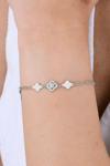 925 ayar Gümüş rodyumlu zirkon taşlı ataç zincir detaylı yonca modeli bileklik. Yonca Boyut:7,5 mm Uzunluk:16+3 cm uzatmalı