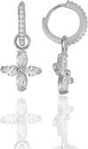925 ayar gümüş rodyumlu zirkon taşlı dört yapraklı yonca küpe. Halka Boyut:13 mm Yukarıdan Aşağı Boyut:26 mm