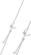 925 ayar gümüş rodyumlu zirkon taşlı, mineli kelebek ve yıldız ışıltısı kadın bileklik. Kelebek Boyut:10 mm Uzunluk:16+3 cm uzatmalı