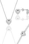 925 ayar gümüş rodyumlu zirkon taşlı kalp modeli kolye,bileklik ve küpe üçlü set…Kolye Montür Boyut:9 mm Bileklik ve Küpe 8,2 mm Bileklik Uzunluk:16+3 cm Zincir Uzunluk:45 cm