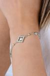 925 ayar Gümüş rodyumlu zirkon taşlı telkari görünümlü işlemeli yonca bileklik. Yonca Boyut:12 mm Uzunluk:16.5+3.5 cm