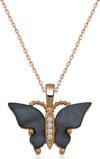 Gümüş Rose Antrasit Kaplangözü Taşlı Kelebek Bayan Kolye